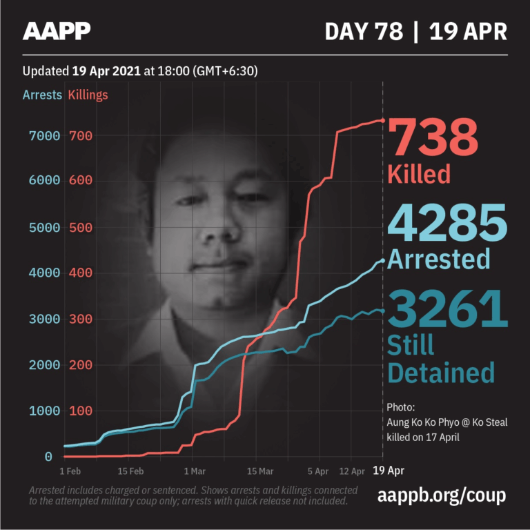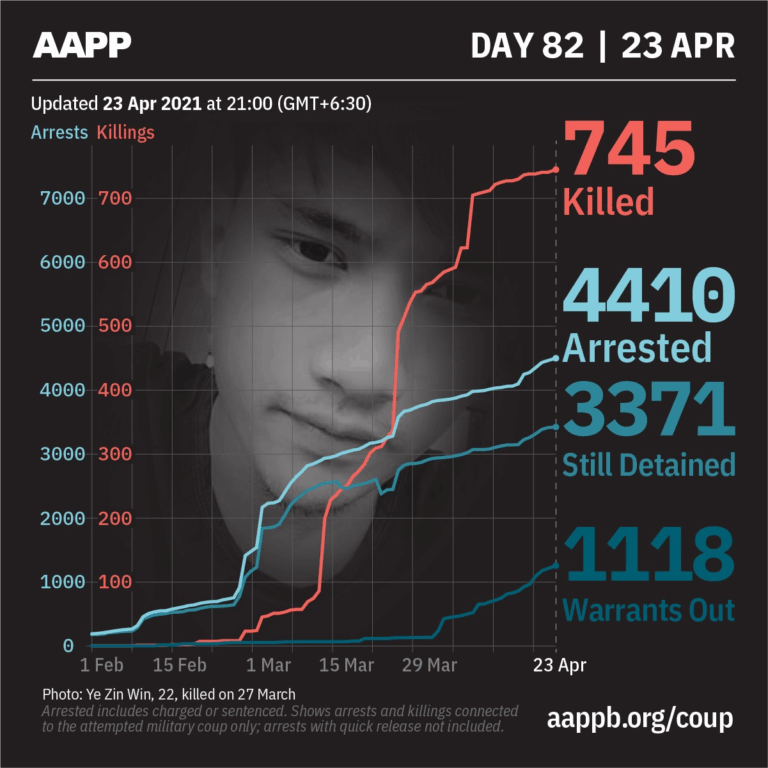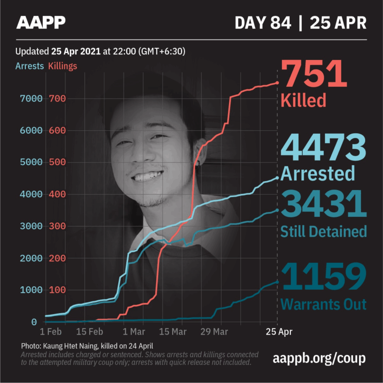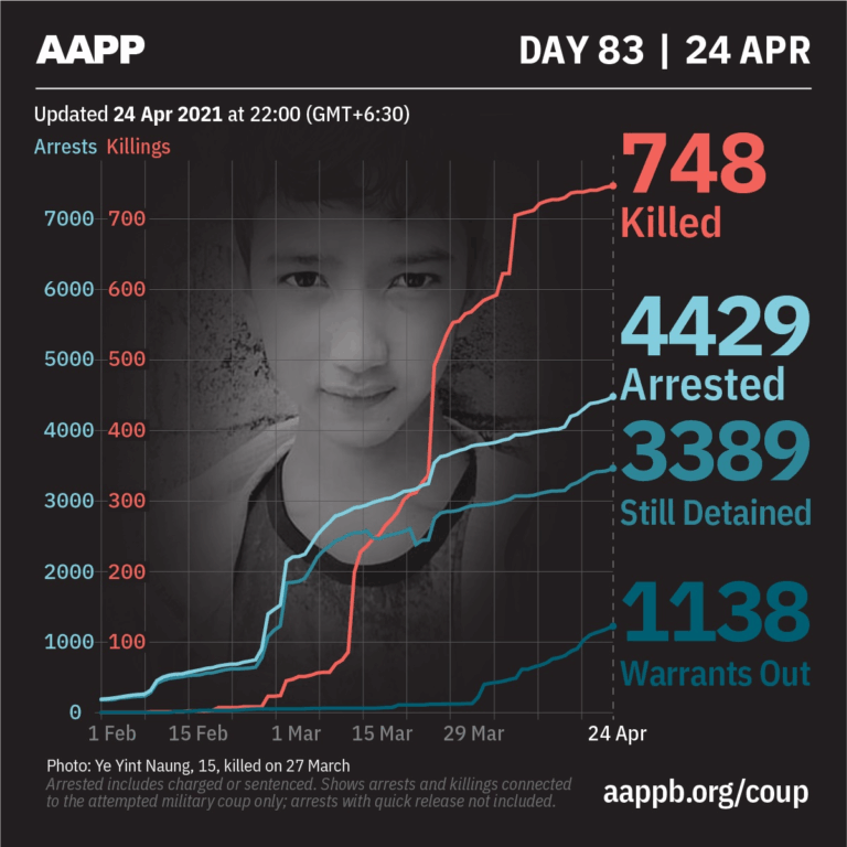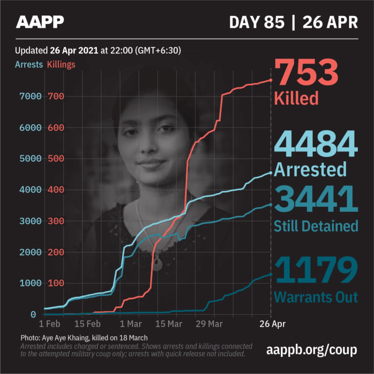 Daily Briefing in Relation to the Military Coup Updated 26 April 2021 As of 26 April, (753) people are now confirmed killed by this junta coup. The Assistance Association for Political Prisoners (AAPP) compiled and documented (2) fallen heroes today.…