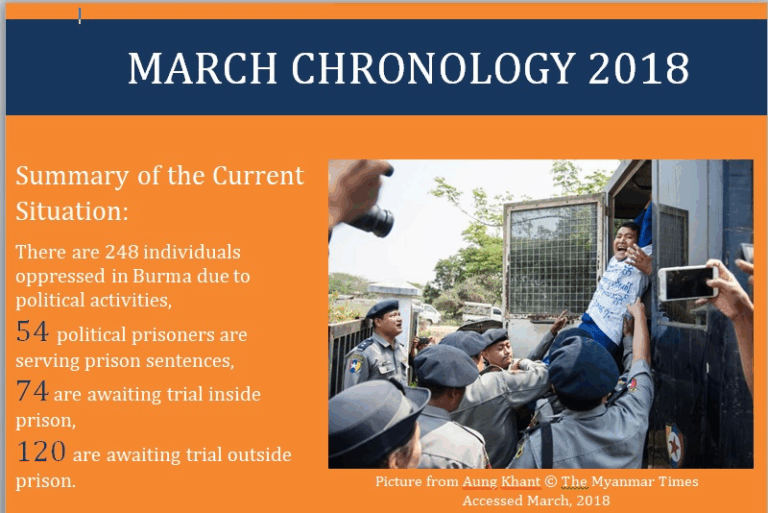 MONTH IN REVIEW March in Numbers Arrests: In March, 39 people were arrested. Of these, 37 were arrested by Ethnic Armed Groups (EAGs); 21 by the Kachin Independence Army (KIA) and 16 by the Myanmar National Democratic Alliance Army (MNDAA).…