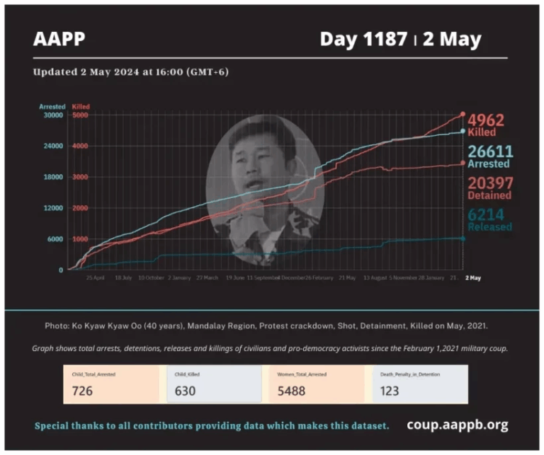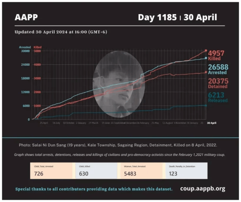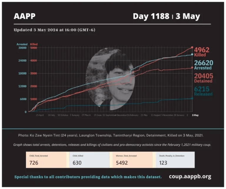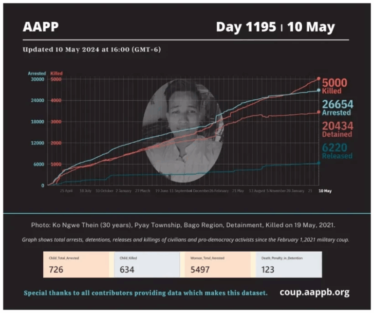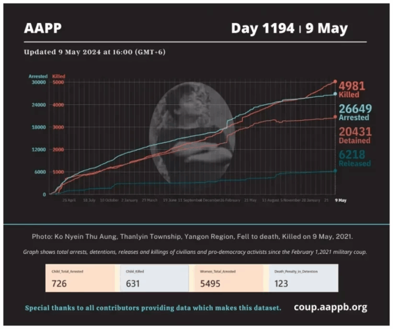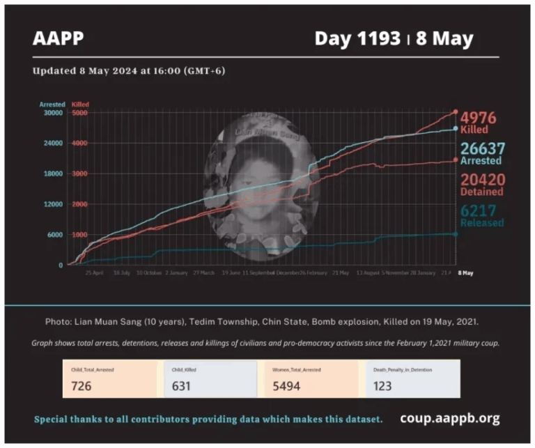 Daily Briefing in Relation to the Military Coup Date – 14 May 2024 Since the 1 February 2021 coup, a total of (5,050) people, including pro-democracy activists and civilians have been killed by the junta and pro-military groups during the…