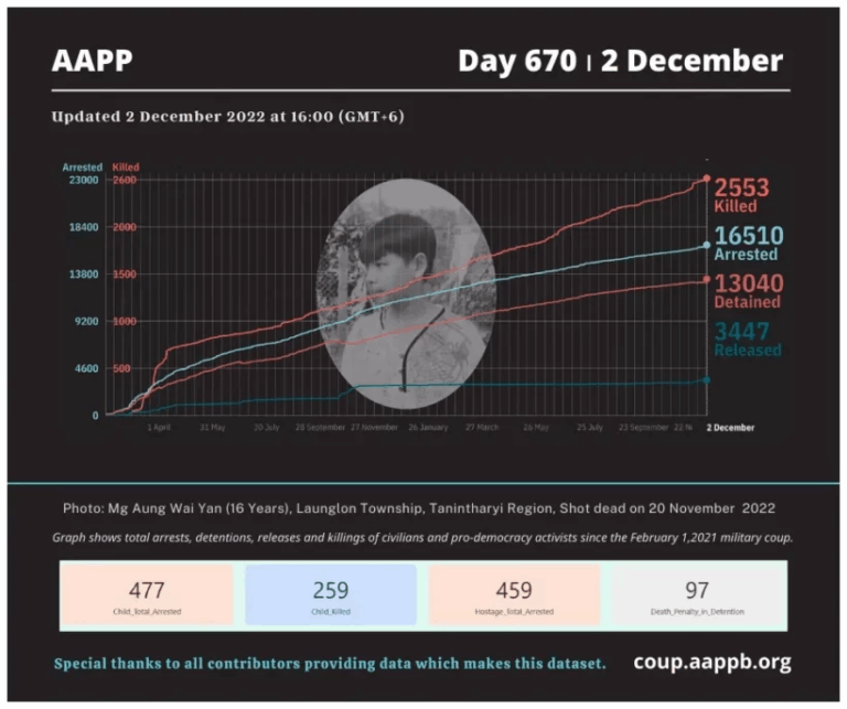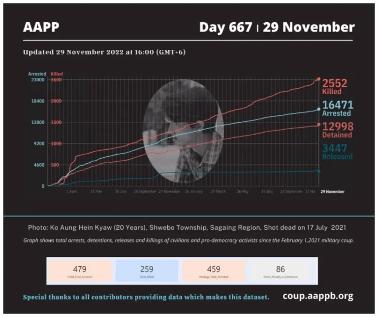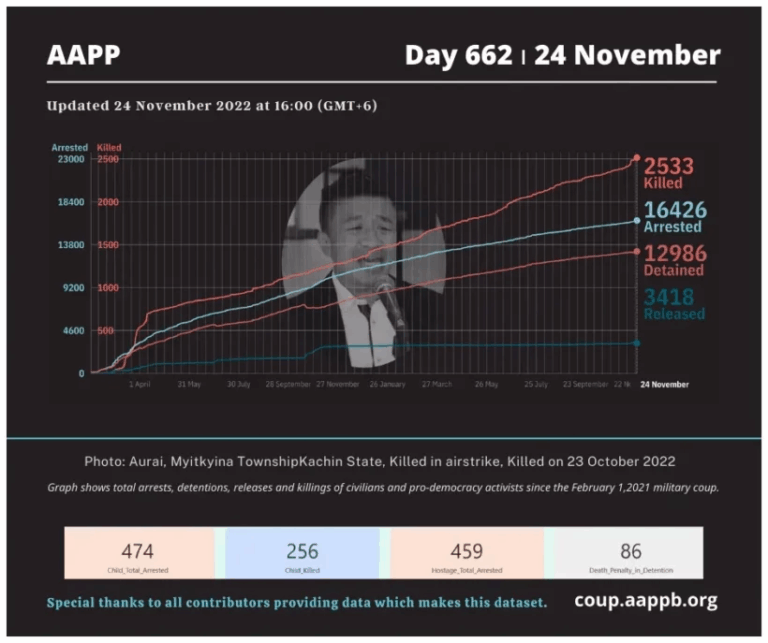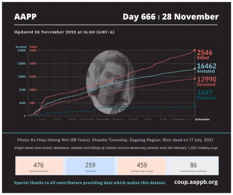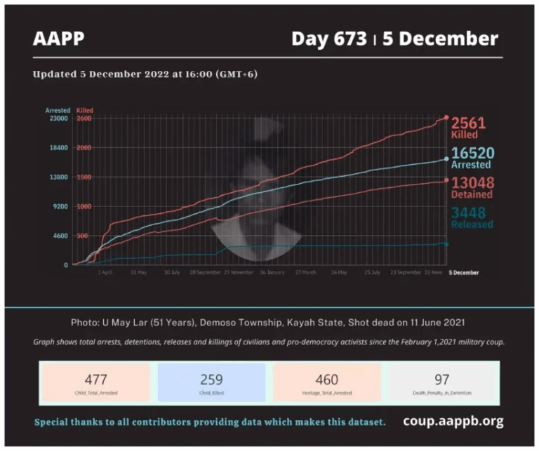 Daily Briefing in Relation to the Military Coup Updated 5 December 2022 According to AAPP documentation, at least (900) houses and buildings have been sealed off by the junta between February 2021 and November 2022. Since the February 1, 2021, military coup…