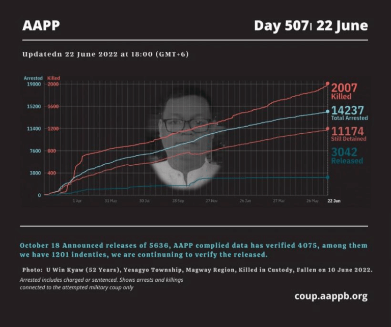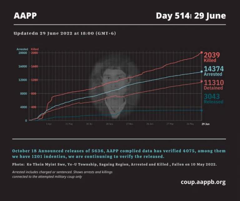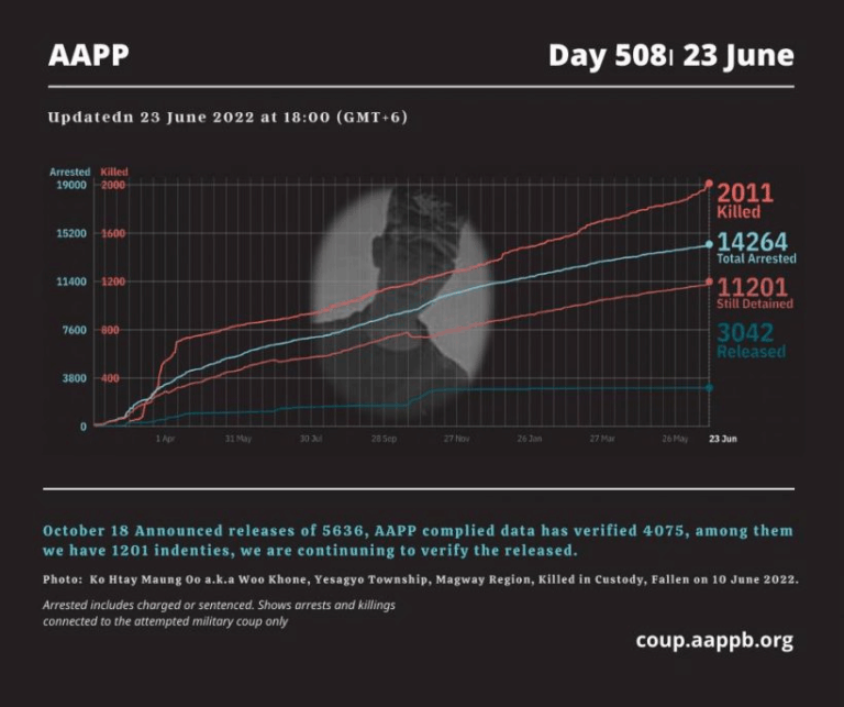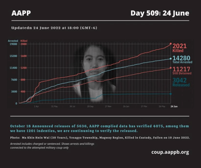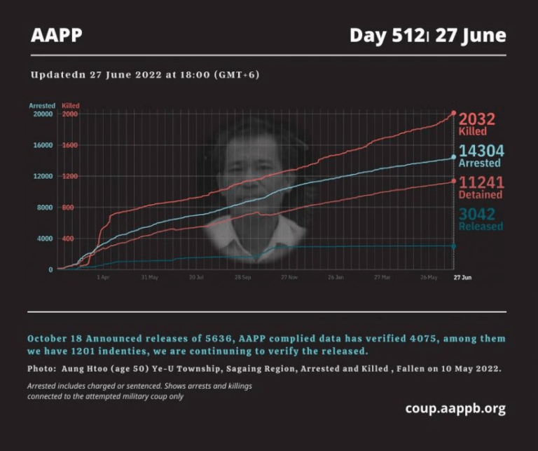 Daily Briefing in Relation to the Military Coup Updated 30 June 2022 According to AAPP documentation, at least (617) houses and buildings have been sealed off by Junta between February 2021 and May 2022. Since the February 1, 2021 military coup and…