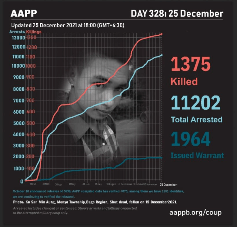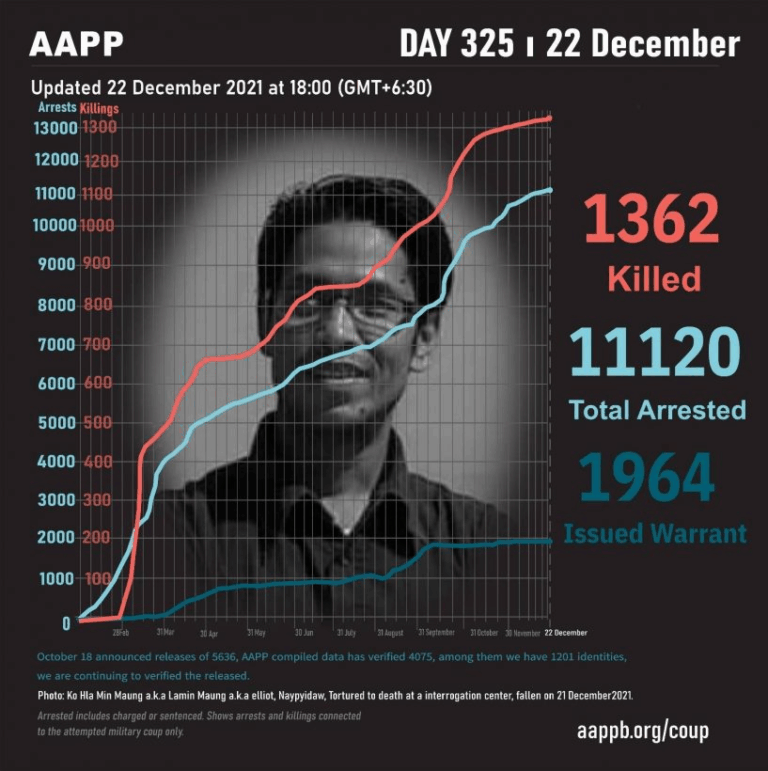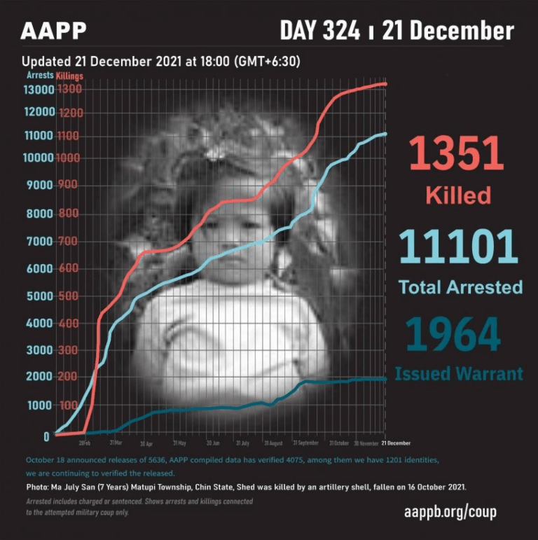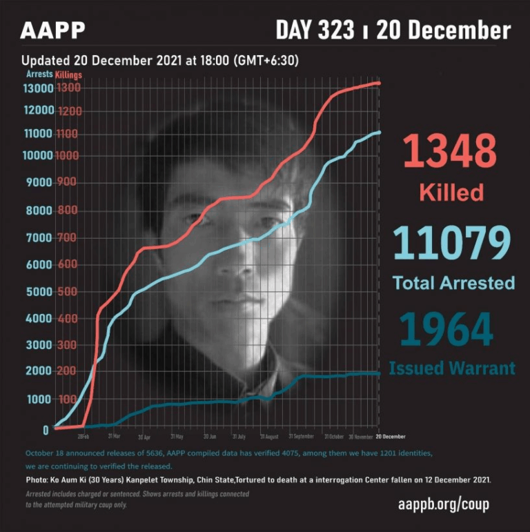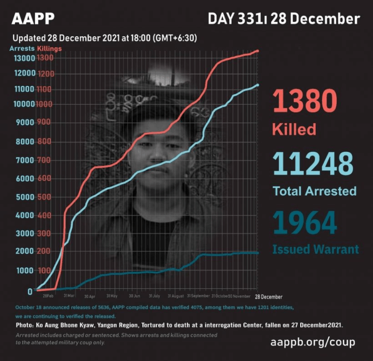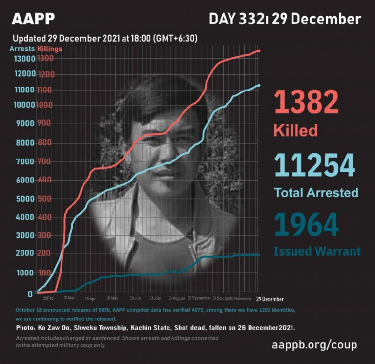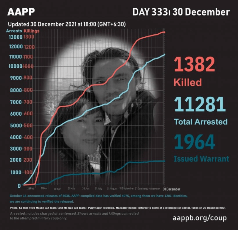 Daily Briefing in Relation to the Military Coup Updated 30 December 2021 As of December 30, (1382) people are now confirmed killed by this junta coup. This is the number verified by AAPP, the actual number of fatalities is likely much higher.…