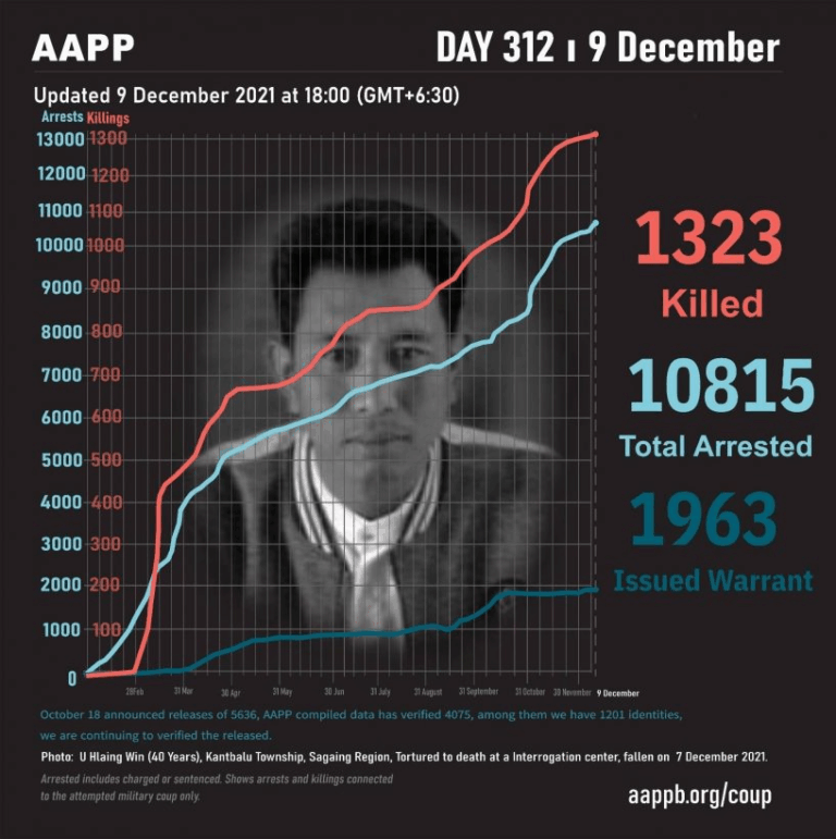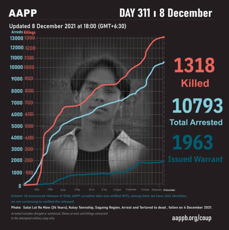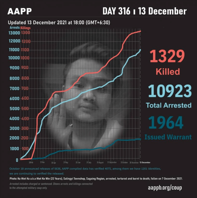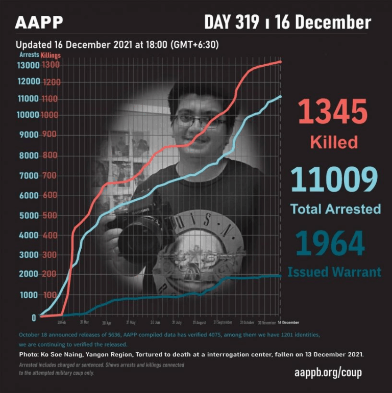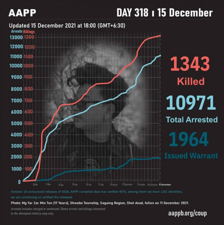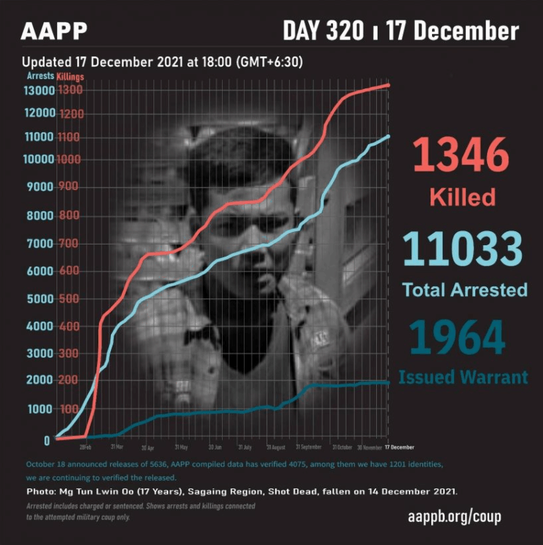 Daily Briefing in Relation to the Military Coup Updated 18 December 2021 As of December 18, (1346) people are now confirmed killed by this junta coup. Today, there were no confirmed fallen heroes. This is the number verified by AAPP, the actual…