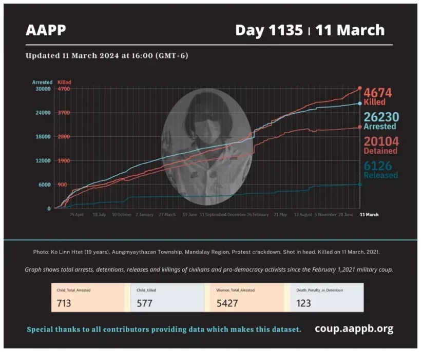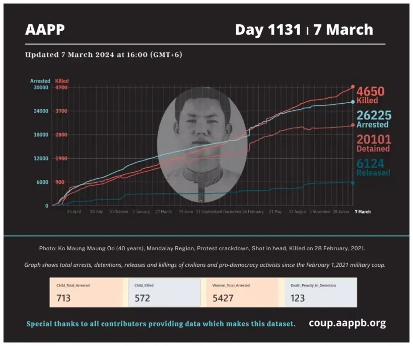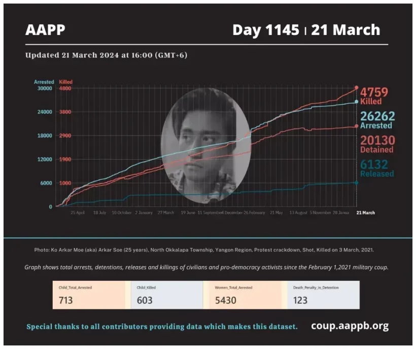 The Assistance Association for Political Prisoners (Burma), otherwise known as AAPP, is a human rights organization based in Mae Sot, Thailand and Rangoon, Burma. AAPP advocates for the release of all remaining political prisoners in Burma and for the improvement of their quality of life during and after incarceration. AAPP has developed rehabilitation and assistance programs for those political activists who have been released while continuing to document the ongoing imprisonment of political activists in Burma.